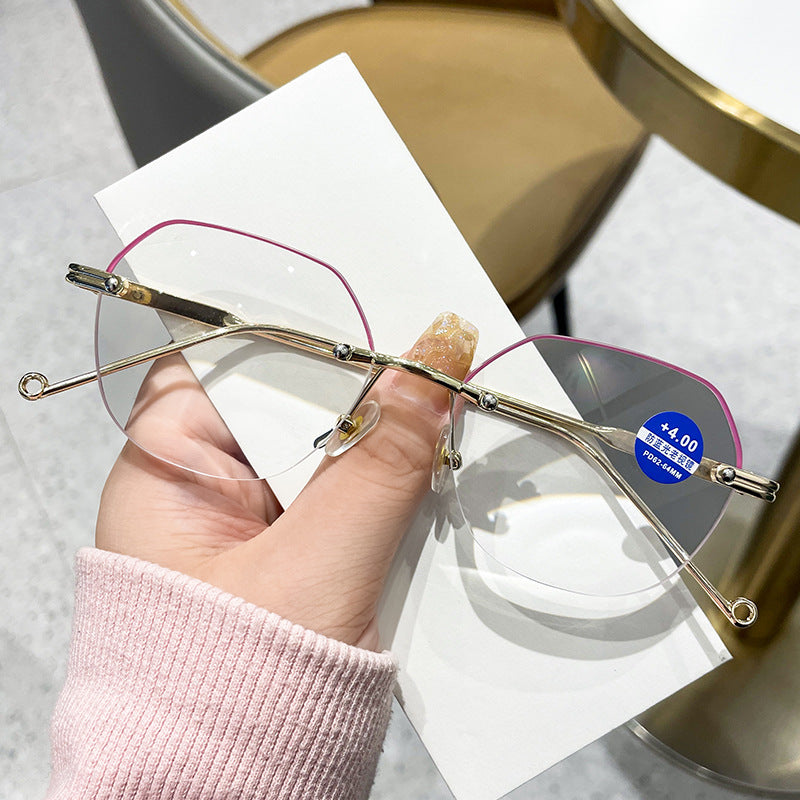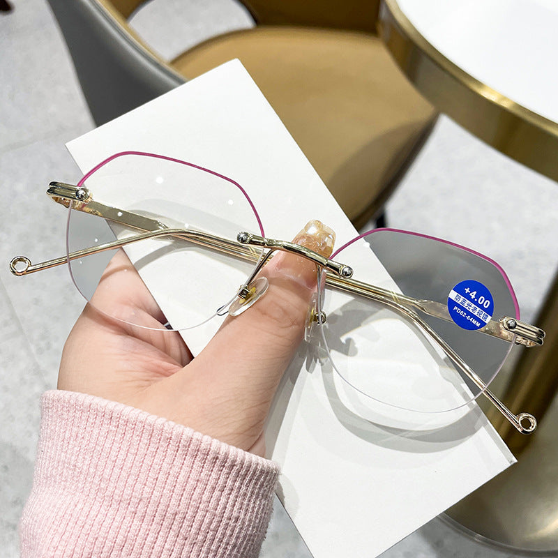 WOMEN'S FASHION DIAMOND CUTTING EDGE FRAMELESS ANTI-BLUE LIGHT READING GLASSES