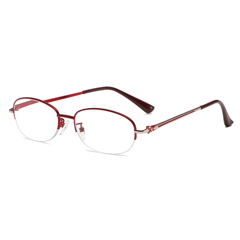 Experience unparalleled style with our women's fashionable semi-rimless anti-blue light reading glasses. boasting curved temple arms that add a touch of elegance to your look. The sleek design not only enhances the overall aesthetics but also ensures a secure and comfortable fit. Embrace the perfect blend of fashion and function with our thoughtfully crafted temple arms that elevate your style effortlessly.