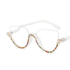WOMEN'S CAT EYE RHINESTONE DECORATION HALF FRAME PRESBYOPIA GLASSES
