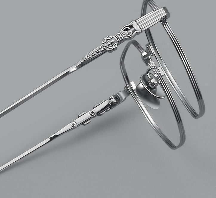 These stylish eyeglasses are made of polished and slender metal material. Featured with fashionable design. It is a good choice for man or women who are looking for a pair of fashionable eyeglasses.