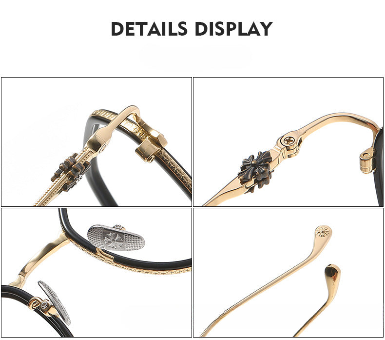 These stylish eyeglasses are made of polished and slender metal material. Featured with fashionable design. It is a good choice for man or women who are looking for a pair of fashionable eyeglasses.