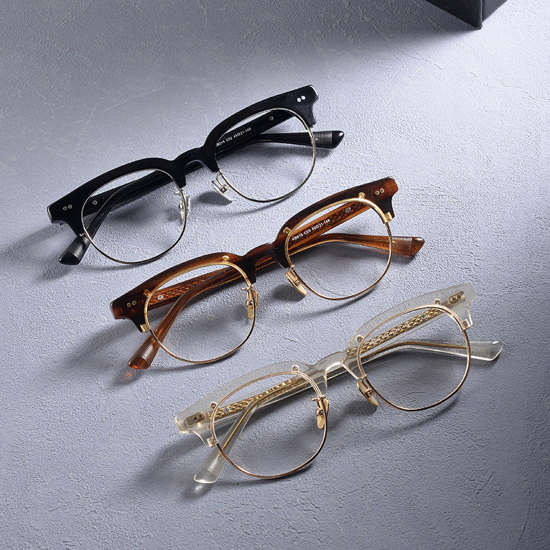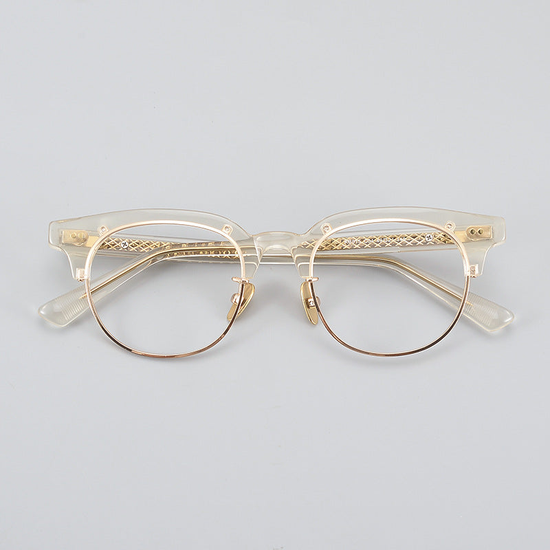 Acetate Semi-Rimless Oval Glasses Frames 015